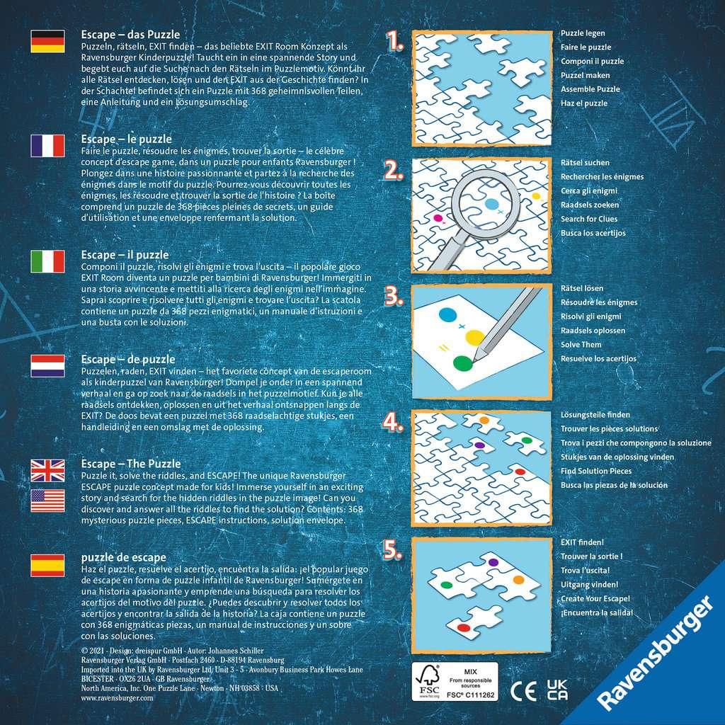 Découvrez la première offre de puzzles inspirée des jeux d'évasion, adaptée aux enfants dès 9 ans ! Une fois que les 368 pièces du puzzle sont assemblées, les enfants plongent dans un univers plein de mystère et d'énigmes à résoudre. En observant attentivement l'illustration, ils pourront débusquer les indices et mettre à l'épreuve leurs sens de la déduction.