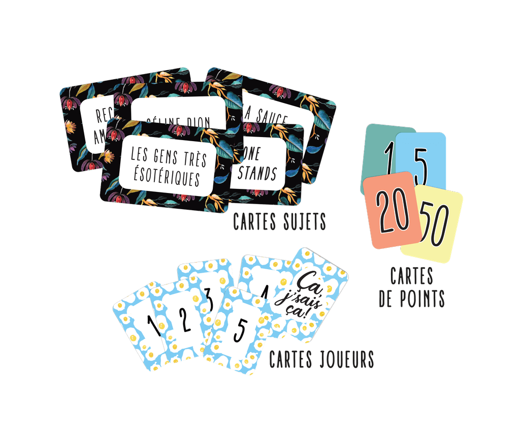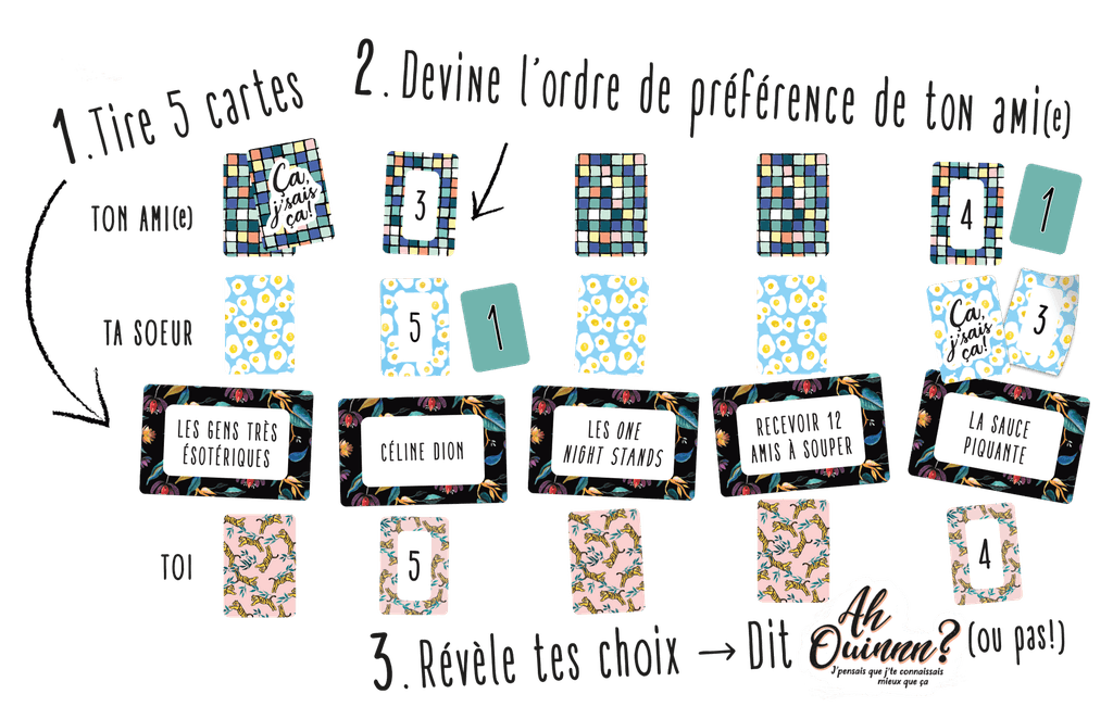 L’idée de ce jeu consiste à deviner l’ordre de préférence des autres joueurs parmi 5 sujets.