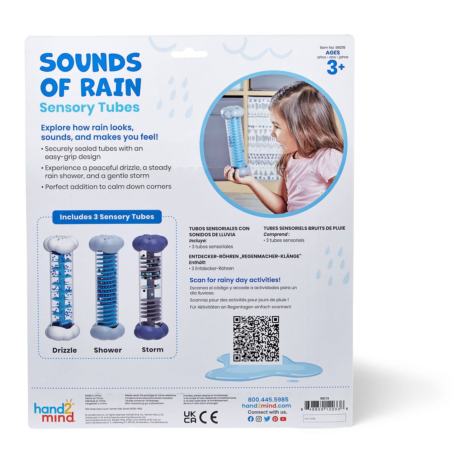 Cet ensemble comprend 3 tubes sensoriels faciles à saisir, chacun avec un son différent : bruine, averse et tempête douce.