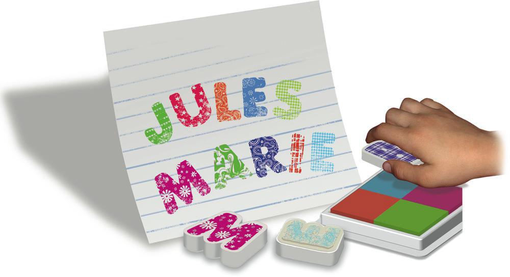 Un coffret pour écrire des mots et des noms à l'aide d’amusants tampons des lettres de l'alphabet.