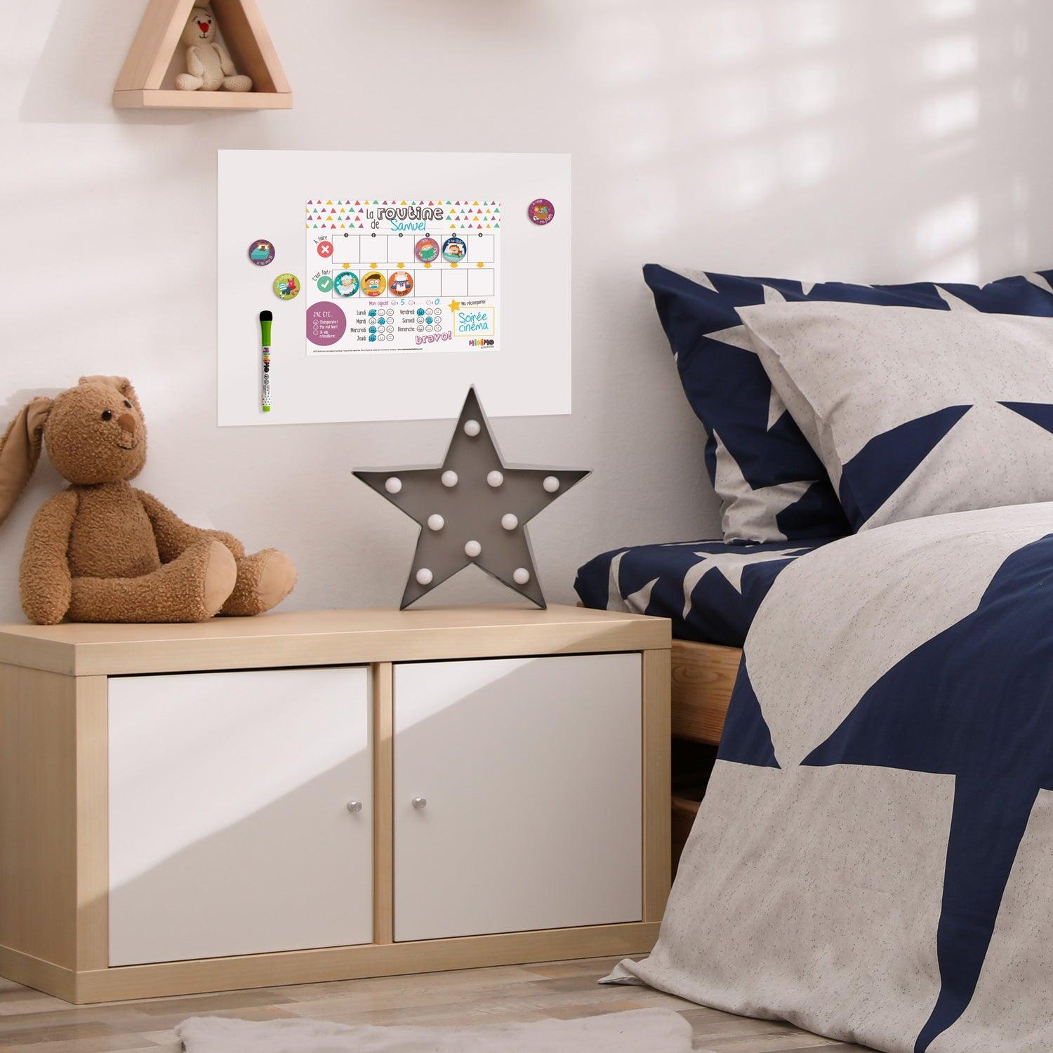 - Dans la salle de bain avec Mon tableau de propreté ou pour un petit rappel des tâches à ne pas oublier avant le dodo