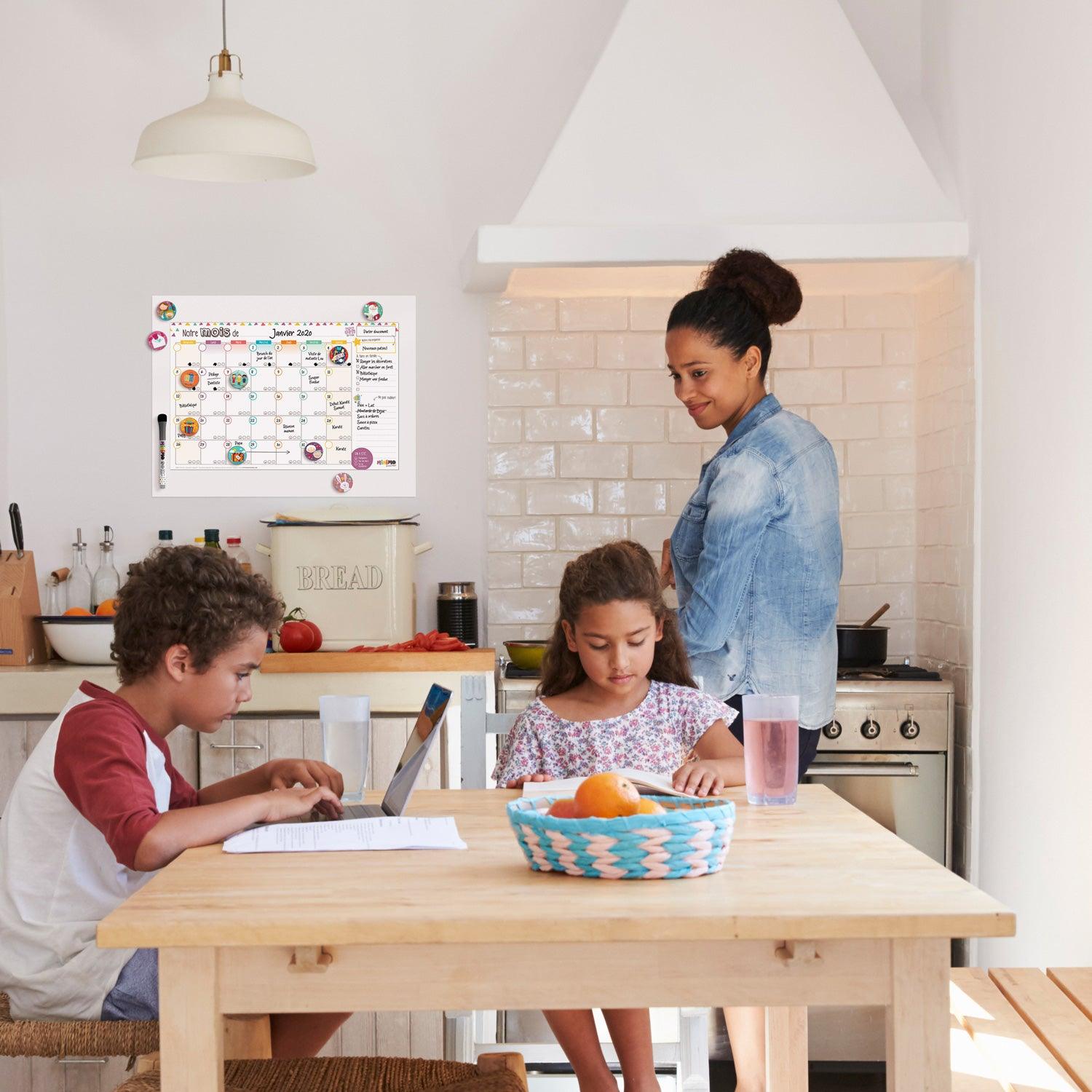 - Près de l’entrée pour rappeler à ton enfant ce qu’il doit mettre dans son sac à dos ou juste pour lui écrire un petit mot!