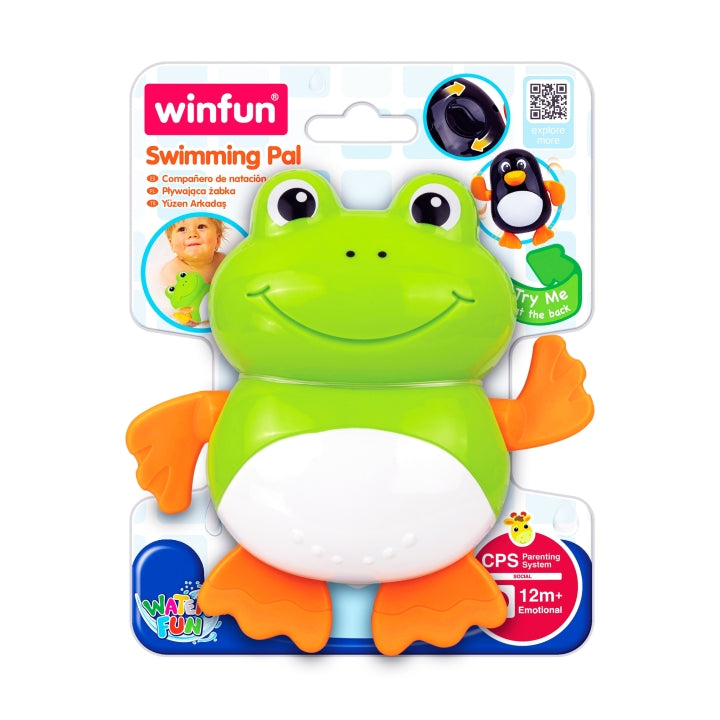 Une grenouille flottante amusante! Tourner le bouton pour faire tourner les nageoires et faire nager la grenouille. Facile à vider et à nettoyer.
