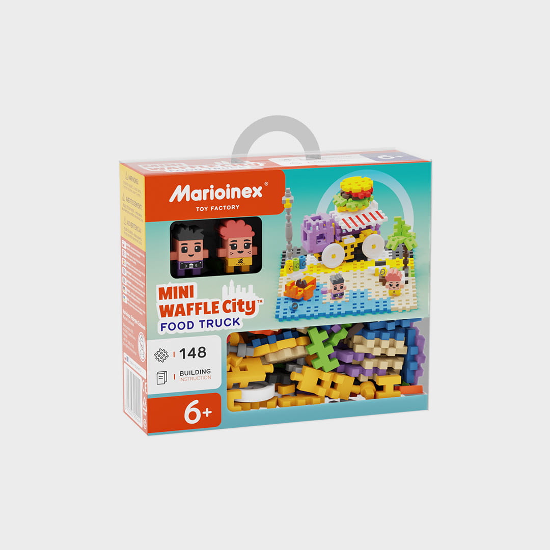 L'ensemble Food Truck est composé de 148 blocs et de deux personnages originaux. Jouez le rôle d'un restaurateur et servez à vos clients les plats les plus savoureux. Combinez ce jeu avec d'autres de la série Mini Waffle City et agrandissez le quartier avec la zone restaurant. Assemblez le jeu en suivant les instructions ou laissez les enfants donner libre cours à leur imagination et construire leur propre restaurant !