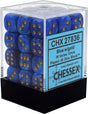 Brique de 36 dés 6 faces 12mm Vortex bleu avec points dorés