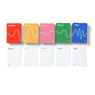 Bruitages est un jeu à cadence rapide, interactif et particulièrement bruyant. L’objectif est de faire deviner à votre équipe le plus grand nombre possible de mots ou expressions inscrit(e)s sur les cartes Catégorie en une minute. Vous pouvez utiliser n’importe quelle combinaison de sons et de gestes, mais devez garder les mains derrière le dos. Vous disposez également de Bouées de sauvetage. Utilisez-les de manière stratégique pour vous aider à gagner.