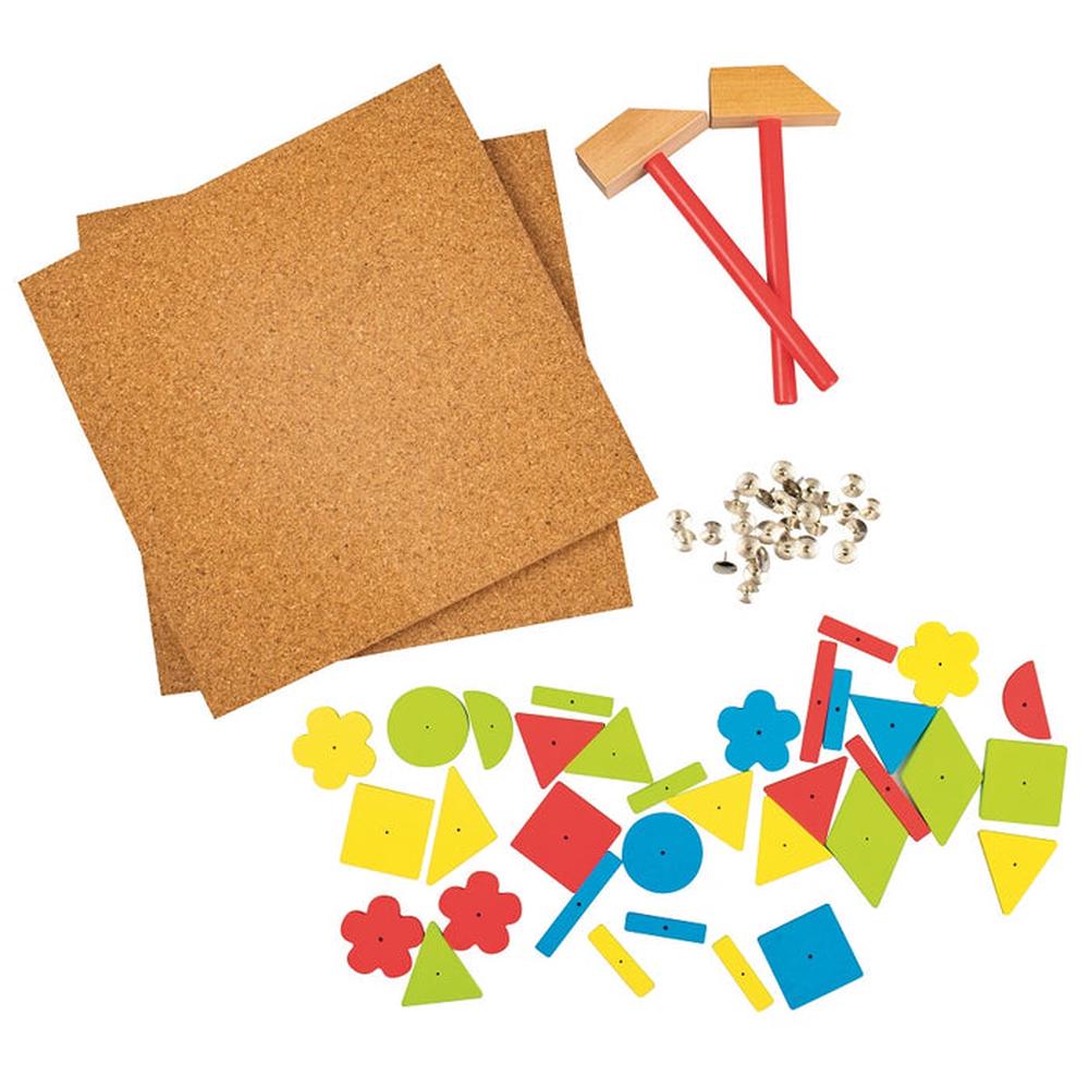 Le martello développe la dextérité et l'imagination. Votre enfant peut assembler lui-même les pièces colorées pour former des images aux couleurs vives. À l'aide d'un maillet en bois et de clous, votre enfant peut fixer les pièces sur le tableau en liège.
