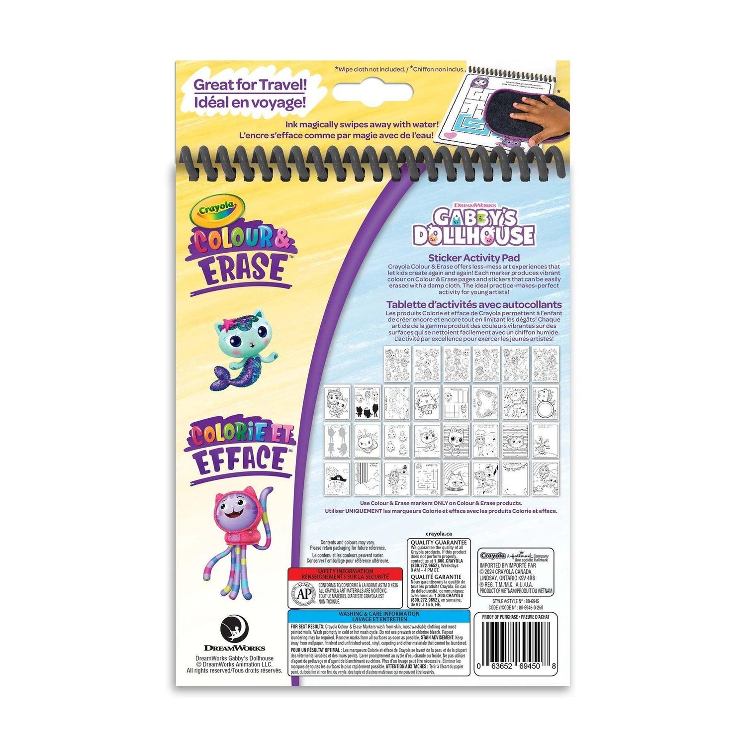 Explorez le monde extraordinaire de la maison de poupée de Gabby dans les pages de ce bloc d'activités à autocollants réutilisables de Crayola ! Coloriez et effacez avec 4 marqueurs lavables et 12 pages de coloriage que vous pouvez effacer chaque fois que vous êtes prêt à prendre un nouveau départ. Décorez les pages d'activités avec l'un des plus de 100 autocollants colorables, qui peuvent être effacés et repositionnés autant de fois que vous le souhaitez. Tous les produits Crayola Colour & Erase offrent des expériences artistiques moins salissantes que les enfants peuvent créer à plusieurs reprises !