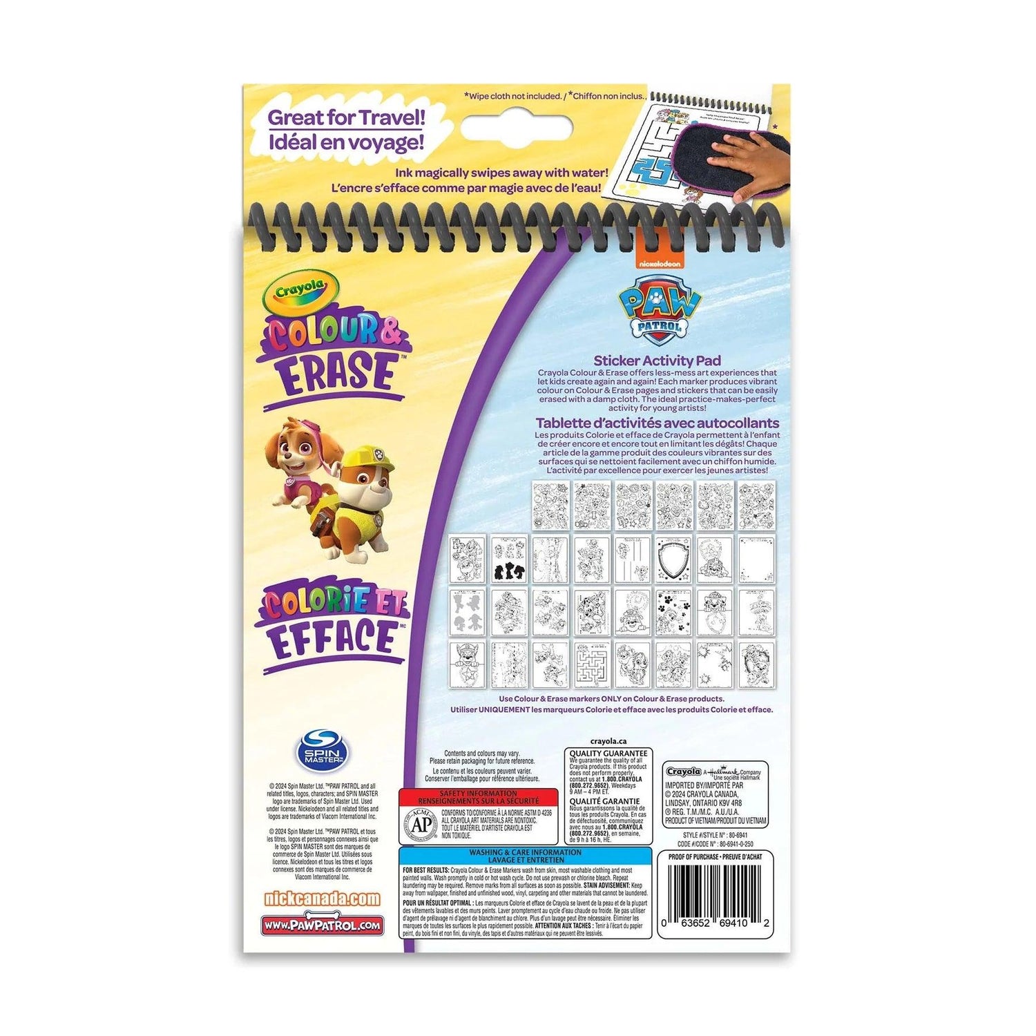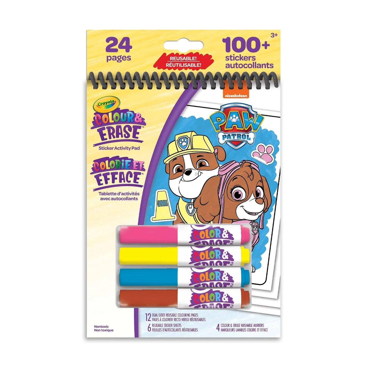 Les chiots de la Pat' Patrouille sont prêts à partir à l'aventure dès qu'elle se présente dans les pages de ce bloc d'activités à autocollants réutilisables de Crayola ! Coloriez et effacez avec 4 marqueurs lavables et 12 pages de coloriage que vous pouvez effacer chaque fois que vous êtes prêt à prendre un nouveau départ. Décorez les pages d'activités avec l'un des plus de 100 autocollants colorables, qui peuvent être effacés et repositionnés autant de fois que vous le souhaitez. Tous les produits Crayola Colour & Erase offrent des expériences artistiques moins salissantes que les enfants peuvent créer à plusieurs reprises !