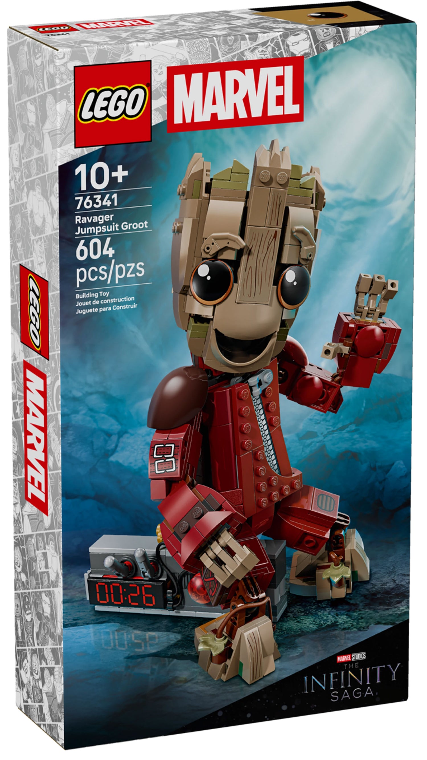 Cette marchandise LEGO ǀ Marvel à collectionner comprend Groot portant le costume de Ravageur qu’il a dans le film Les Gardiens de la Galaxie Vol.2 de Marvel Studios. La figurine à construire est livrée avec un détonateur comprenant 2 boutons et 2 leviers mobiles, faisant référence à une scène emblématique du film. Le personnage est très mobile, avec des épaules, des bras, des doigts, des hanches, des pieds et un cou entièrement articulés, ainsi que des sourcils réglables pour diverses expressions faciales.
