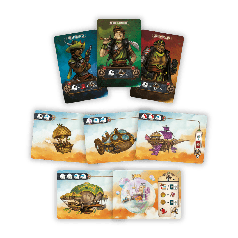 Celestia Duo est un jeu coopératif pour 2 joueurs à communication limitée. Durant votre périple, partagez-vous astucieusement les cartes pour déjouer les embuscades. Anticipez la main de votre partenaire car si l’un de vous, à son tour, ne peut pas combattre un dé, l’aéronef subira un dommage. Faites étape au bon moment dans les cités volantes pour vous ravitailler et recruter des passagers aux capacités bien utiles...