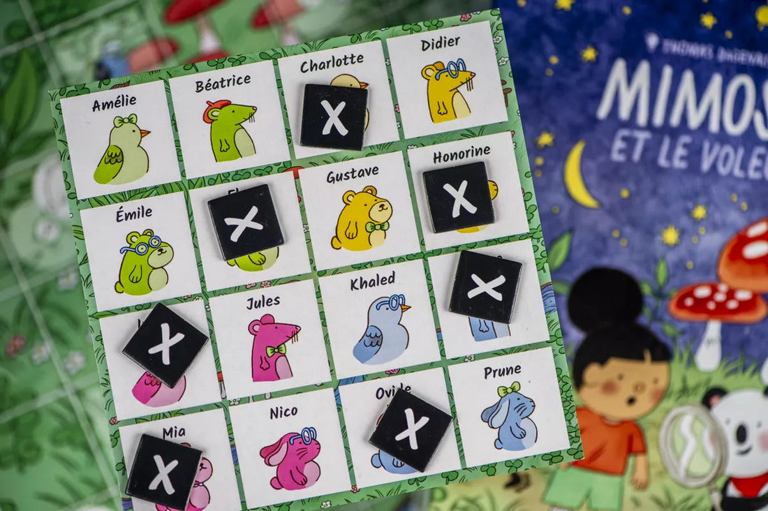 Mimose & Sam et le voleur de fruits est un jeu de déduction facile d’accès de type “un contre tous” pour les jeunes enfants comme les adultes. Un joueur tient le rôle du voleur qui doit trouver tous les beaux fruits mûrs et qui doit retourner dans sa cachette avant de se faire pincer. Les autres jouent les détectives et travaillent en équipe. Ils devront se répartir les dés équitablement et récupérer les indices pour identifier correctement le voleur et l’attraper.