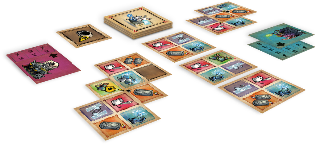 Chacun leur tour, les joueurs prennent une carte dans la réserve de recrues et la disposent stratégiquement sur leur grille d’armée, où elle rejoint les guerriers et sorciers du même type. Vos valeurs d’attaque et de défense – en combat physique ou magique – sont déterminées par le nombre de poulets du type correspondant placés côte à côte sur votre grille.