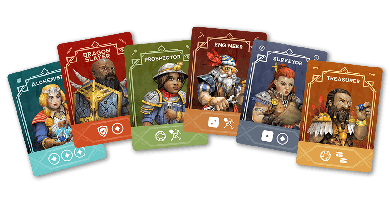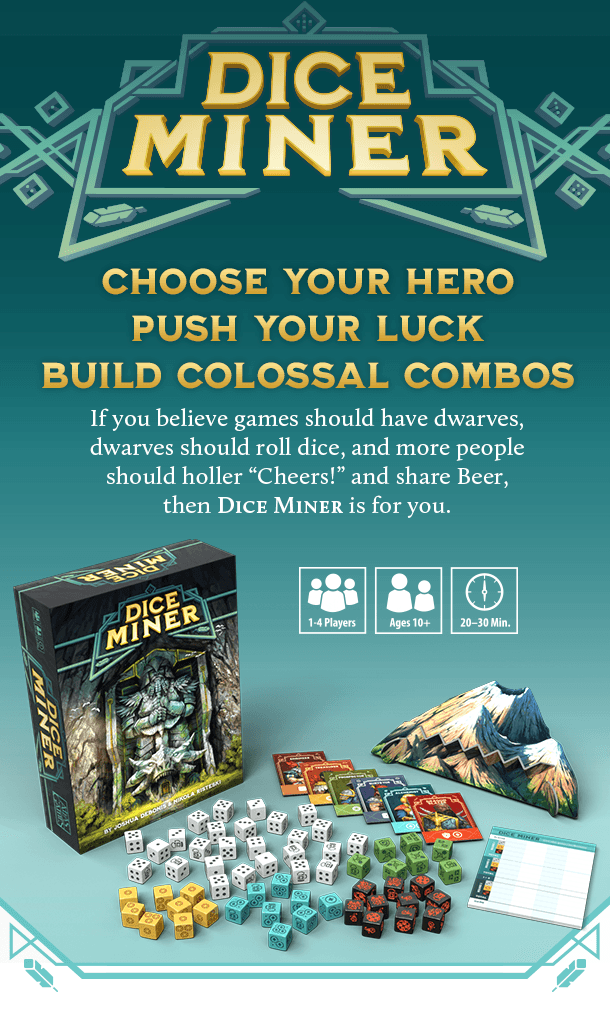 But now the Dragons have returned. The Dwarves must remember their roots, clear old tunnels, and return to ancient caverns while fighting their primeval foes. Draft dice off the mountain in three rounds to amass the greatest treasure!