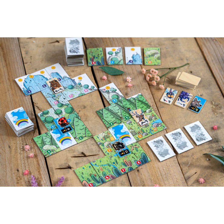 Récupérez une tuile de votre main puis placez la dans votre paysage. Le but du jeu sera de reconstituer un paysage en associant ses tuiles pour faire un maximum de points. Il faudra faire attention à ne pas laisser de tuiles à l'adversaire tout en optimisant son paysage selon les choix de celui-ci. Aussi, créez des carrés de tuiles pour récupérez des esprits qui vous aideront en cours ou en fin de partie. L'expérience est zen et très rapide à mettre en place!