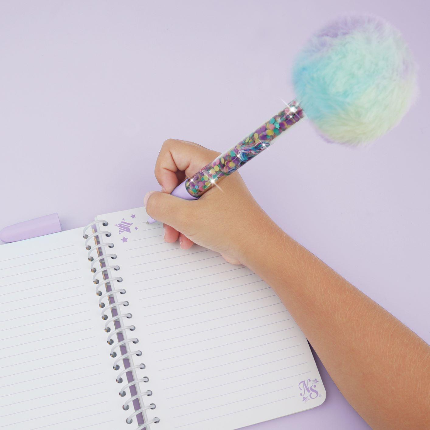 Carnet de notes, trousse à crayons, marque-page et stylo à pompon prêts à remplir
