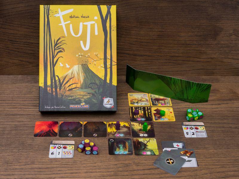 Vous jouez un groupe d’aventuriers sur la route du Mont Fuji, le célèbre volcan japonais. Mais juste avant d’atteindre le but, la terre commence à trembler et le volcan entre en éruption ! Votre groupe doit maintenant fuir au plus vite et se mettre en sécurité dans le village.Dans ce jeu coopératif, les joueurs vont jeter leurs dés derrière leur paravent à chaque tour ; ils devront les utiliser au mieux pour parcourir les différentes cartes qui forment le chemin retour vers le village. Mais pour aller sur une carte il faut que les dés remplissent certaines conditions mieux que ceux de vos voisins ! Et comme vous ne connaissez que la valeur de vos dés et que la communication entre équipiers est sommaire, il vous faudra un peu de chance et de la tactique pour ne pas périr !Une mécanique originale pour servir un jeu au thème immersif où la tension est omniprésente !