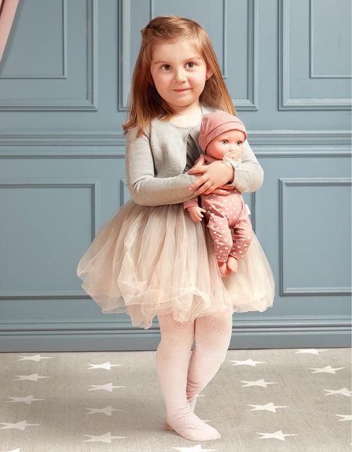 Babi est habillé d'un pyjama à pois et d'un joli chapeau et possède une suce.