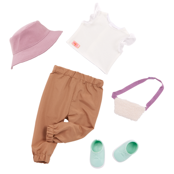 Découvrez des styles mignons et une mode amusante avec l'ensemble Our Generation Ready to Roam! Cet ensemble de vêtements pour poupées de 18 pouces comprend un haut, un pantalon décontracté et des chaussures de course pour un look de plein air complet. De plus, il est accompagné d'accessoires élégants que les poupées peuvent ajouter à leur collection, comme un joli chapeau seau et un sac en fausse fourrure à bandoulière! Quand vient l'heure de s'habiller, cette tenue de poupée de 18 pouces est dotée de fermetures faciles à ouvrir pour l'enfiler et l'enlever rapidement. Les enfants peuvent ainsi mélanger, assortir et créer des looks plus élégants tout en développant leur imagination et en s'exprimant.