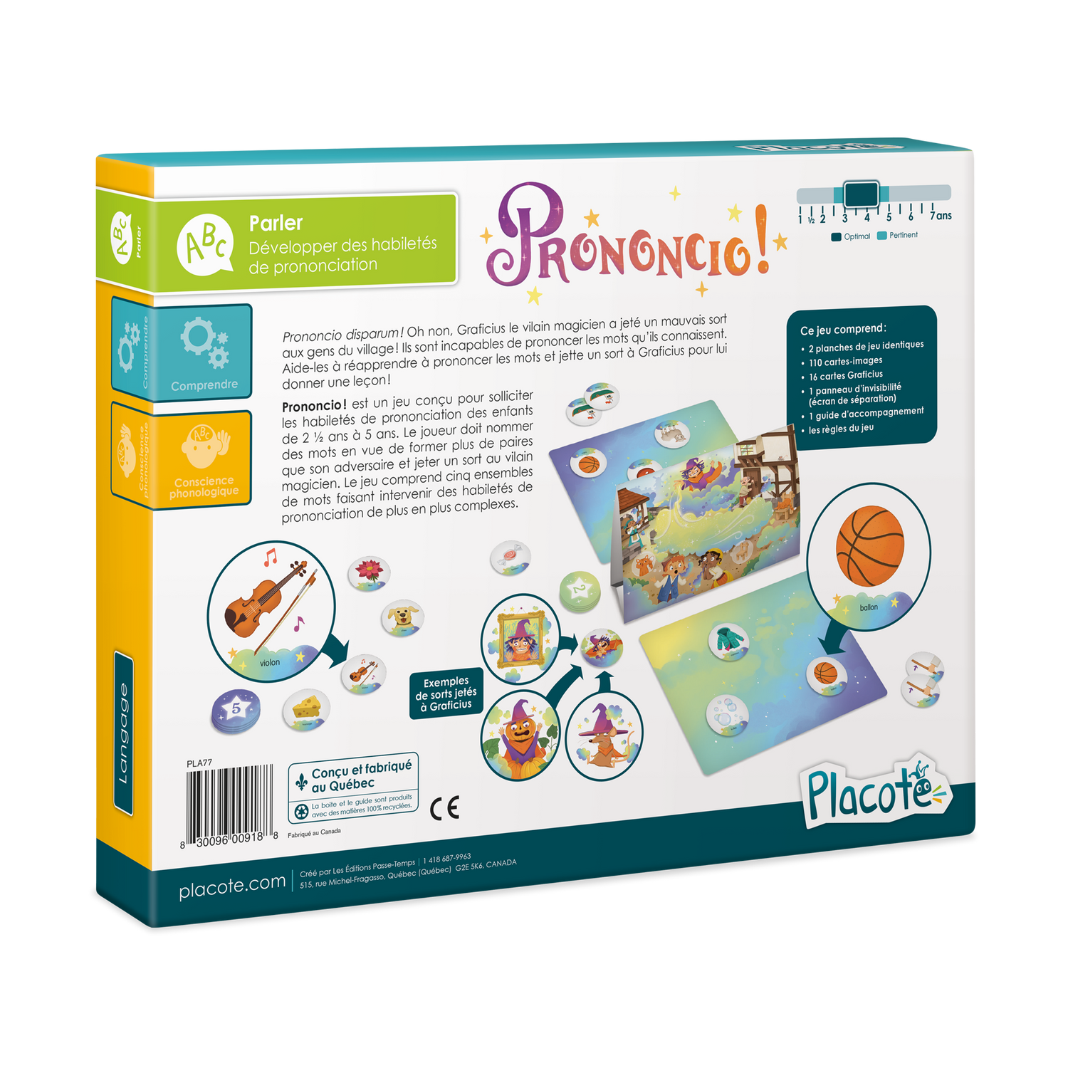 Prononcio! est un jeu conçu pour solliciter les habiletés de prononciation des enfants de 2½ ans à 5 ans. Le joueur doit nommer des mots en vue de former plus de paires que son adversaire et jeter un sort au vilain magicien. Le jeu comprend cinq ensembles de mots faisant intervenir des habiletés de prononciation de plus en plus complexes.
