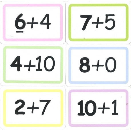 9 règles de jeu progressives pour apprendre les additions en s'amusant. Les cartes représentent les tables d’addition de 1 à 10. Chaque table se repère rapidement par une couleur qui lui est propre. Au recto figure l’opération, au verso le résultat. Les enfants peuvent utiliser le jeu seul en s'auto-corrigeant grâce au résultat qui figure au verso. 9 règles de jeux permettent de jouer avec les additions de différentes manières. C'est stimulant et ludique et on utilise tout ou partie des tables, selon le niveau des enfants!