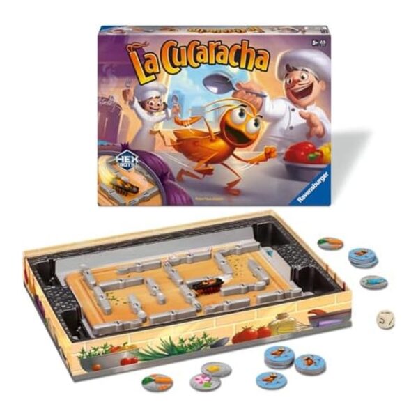 Le cafard traverse la cuisine en bourdonnant ! Pas une minute à perdre : qui parviendra à attraper l’insecte rampant avec ses ustensiles ? Le dé indique s’il faut faire tourner la fourchette, le couteau ou la cuillère. Avec un peu de stratégie, le cafard peut se retrouver pris au piège. Celui qui réussit à l’emprisonner remporte un jeton. Le premier à rassembler cinq jetons gagne la chasse contre cette petite créature qui fuit la lumière !