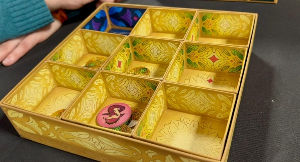 À votre tour, dépensez un jeton d'action pour faire glisser un cocon, comme dans un jeu de taquin, et révéler ainsi de nouvelles informations : chaque joueur ne voit que les indices en face de lui, et il faut donc bien communiquer entre vous pour identifier les cocons ! Si vous dévoilez une trappe au fond de la boîte, ouvrez-la pour activer son effet et découvrir l'animal gardien caché dessous.