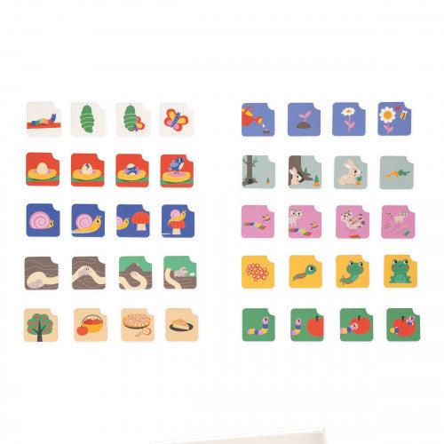 Acquérir la notion de chronologie est une étape importante des apprentissages de la maternelle. Dès la petite section, les enfants commencent à se familiariser avec les séquences qu'ils devront apprendre à remettre dans le bon ordre. Facilitez cette initiation avec ce joli jeu éducatif en bois pour les enfants dès 3 ans. Afin de travailler sa logique tout en s'amusant, l'enfant devra observer les 4 cartes d'une scène et les replacer dans le bon ordre. 10 scènes différentes sont à reconstituer ! Ce jeu permet à la fois de développer la réflexion et l'attention mais également d'enrichir le vocabulaire des enfants et leur connaissance de la nature. Comment une graine se transforme-t-elle en fleur ? Comment se forme le papillon ? Le support en bois est très malin ! Des points de couleurs permettent de vérifier le bon emplacement de la carte et l'enfant est donc capable de s'amuser en toute autonomie. Dans le cadre d'un atelier en duo, vous pourrez accompagner votre enfant dans son apprentissage en le laissant placer les cartes sur le support, puis vous expliquer le déroulement de la scène. Une notice explicative vous permettra d'utiliser au mieux ce jeu destiné aux enfants petite, moyenne et grande section de maternelle.