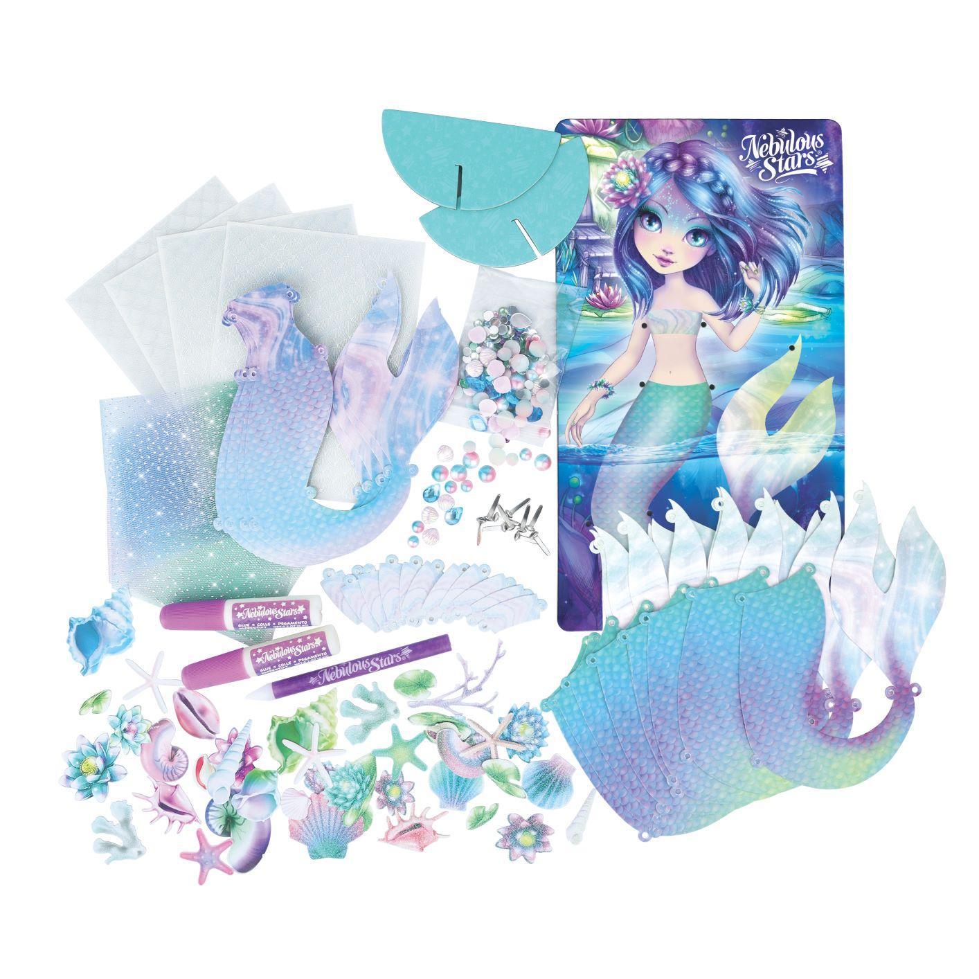 Nenuphia adore nager comme une sirène! Fabrique-lui 15 queues de sirène à partir de coquillages de papier scintillant. Habille-la en suspendant tes créations sur le carton rigide.