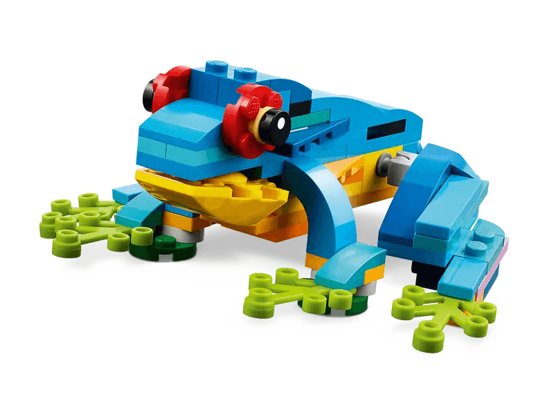 Les enfants peuvent construire 3 animaux exotiques différents avec cet ensemble LEGO 3en1 fantastique. Ils peuvent construire un perroquet coloré assis sur une branche d’arbre ou le convertir en un poisson joyeux qui nage au fond de la mer ou en grenouille effrontée qui peut remuer ses jambes.