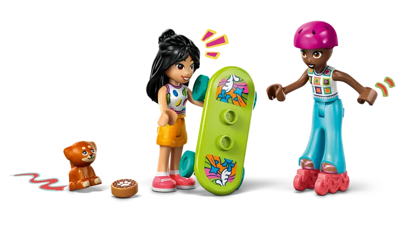 Emmenez les enfants dans un voyage de créativité alors qu’ils aident Liann et Aliya à charger la voiture et la remorque amovible avec tout ce dont ils ont besoin pour leur voyage. Les amis sont assis à l’avant, et il y a un siège pour Aira la chienne à l’arrière de la voiture. Les accessoires incluent un kayak, deux casques, une planche à roulettes, des patins à roues alignées, deux chaises et une glacière contenant un sandwich, un beigne, un biscuit, des cerises et une friandise pour animaux de compagnie. Lorsqu’il est temps de prendre une collation, la glacière sert également de table de pique-nique.