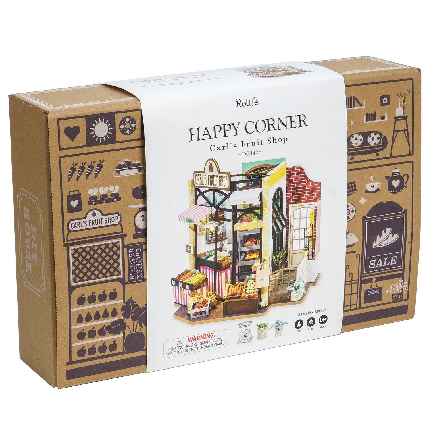 Le kit de maison de poupée miniature Carl's Fruit Shop vous invite dans un coin paisible du quartier. Vous pouvez trouver ces joyaux cachés n'importe où, mais maintenant vous pouvez leur donner vie vous-même. La collection de bricolage est parfaitement adaptée aux débutants pour essayer un nouveau passe-temps ou aux vétérans à la recherche de nouvelles inspirations pour leur prochain projet d'art et d'artisanat.