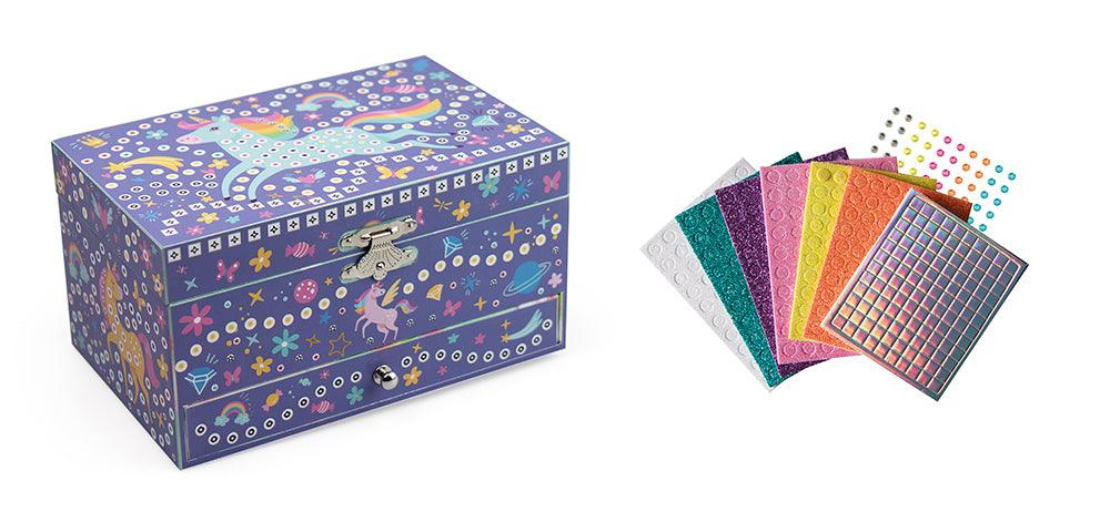 Décore une magnifique boîte à musique! Il suffit de coller les petites mousses et joyaux étincelants sur les graphismes correspondants et le tour est joué!