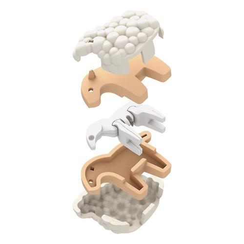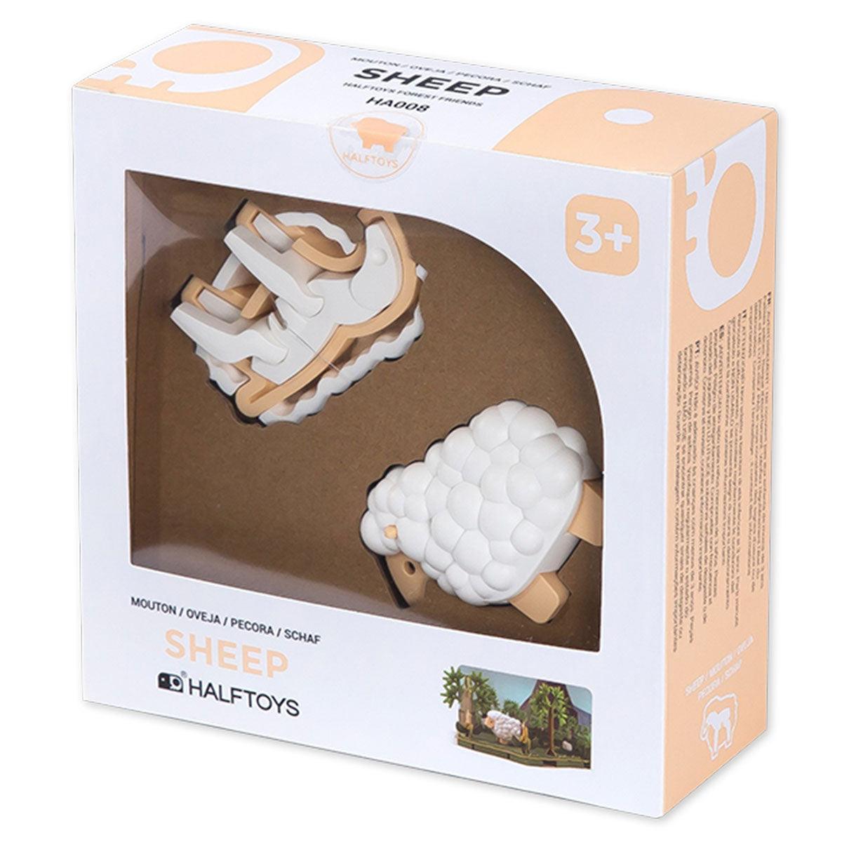 Les moutons domestiques vivent parmi les humains depuis des milliers d'années et, grâce à leur épaisse fourrure de laine, ils peuvent vivre dans presque tous les climats. Ces animaux vivent en troupeaux et ne se séparent généralement jamais des autres membres de leur groupe. En tant que HALFTOY, vous pouvez ouvrir sa coquille magnétique pour découvrir le squelette, un puzzle d'os de 3 pièces. Chaque animal est accompagné d'un diorama qui peut être relié à d'autres dioramas de la collection HALF ANIMAL. Collectionnez-les tous et construisez un monde animal pittoresque !
