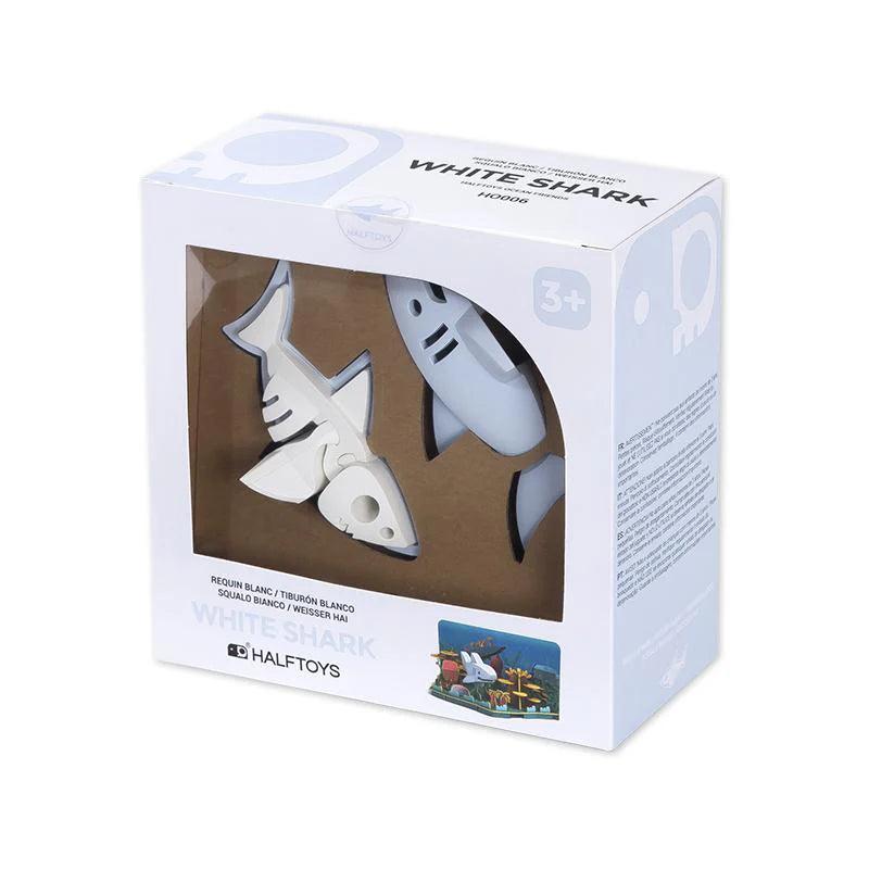 Le grand requin blanc est le plus grand requin prédateur de l'océan. Il vit dans tous les océans de la planète et se trouve souvent près des côtes en raison de l'abondance des autres espèces qu'il peut manger. En tant que HALFTOY, vous pouvez ouvrir sa carapace magnétique pour découvrir le squelette, un puzzle d'os de 3 pièces. Chaque animal est accompagné d'un diorama qui peut être relié à d'autres dioramas de la collection HALF OCEAN. Collectionnez-les tous et construisez un monde océanique pittoresque !