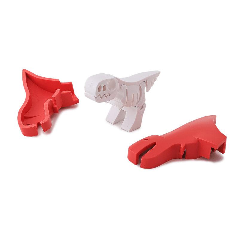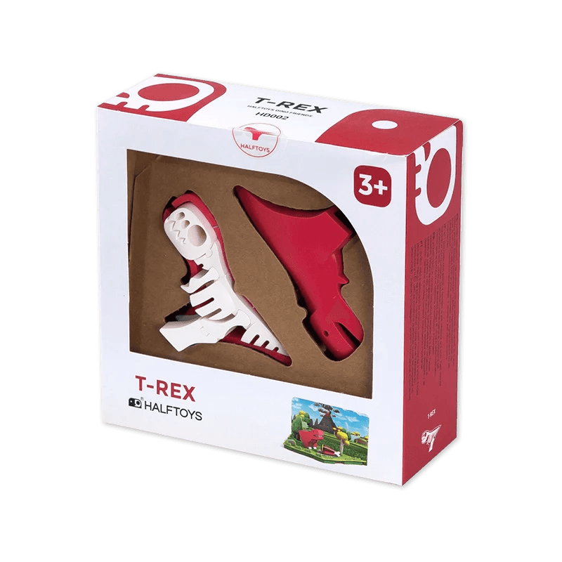 - T-Rex rouge composé de deux parties aimantées dans lequel l'enfant doit reconstituer le squelette