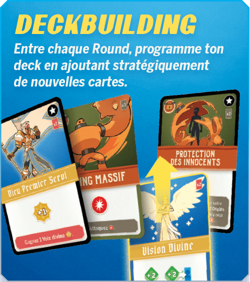 Commencez avec un deck de 2 cartes seulement. Le combat se déroule automatiquement ; dépilez vos cartes en appliquant leurs effets. Chaque fin de round est capitale ! Programmez votre deck en y ajoutant stratégiquement de nouvelles cartes sans modifier l’ordre de celles qui s’y trouvent déjà afin de planifier un assaut décisif !
