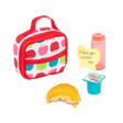 Comprend : 1 boîte à lunch, 1 tranche de jambon, 1 tranche de fromage, 1 croissant coupé, 1 contenant de yogourt, 1 bouteille d’eau et 1 note.