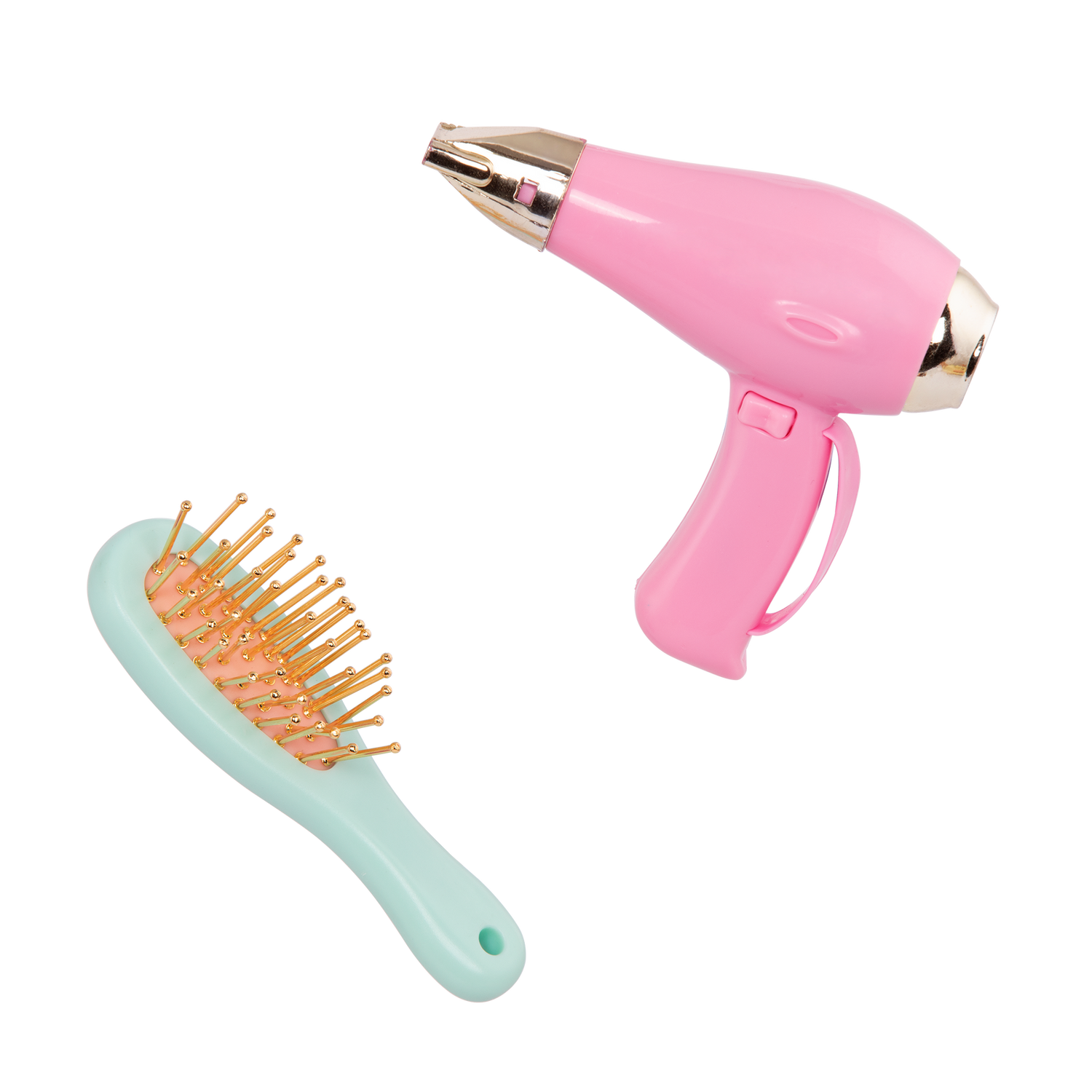 Cet accessoire de salon Gold Hearts est le complément parfait à tout salon de beauté. Assoyez vos poupées sur la chaise et attachez-les avec la sangle de sécurité, puis utilisez les pédales pour soulever et abaisser la chaise afin qu'elle soit à la bonne hauteur pour vous ! La chaise Sitting Pretty est livrée avec une brosse à cheveux et un sèche-cheveux qui émettent des sons réalistes (n'oubliez pas de garder vos poupées à l'abri de la chaleur et de l'eau pour éviter les dommages). Avec un peu d'imagination, il n'y a pas de limite au nombre de coiffures cool que vous pouvez concevoir !