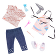 - Comprend : 1 chandail, 1 pantalon, 1 tablier de styliste, 1 paire de chaussures, 1 séchoir à cheveux, 1 paire de ciseaux, 1 peigne et 1 flacon pulvérisateur.