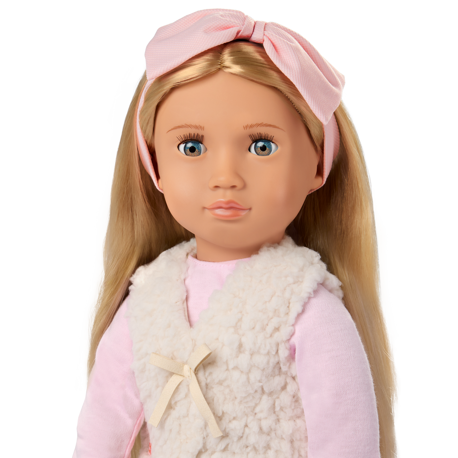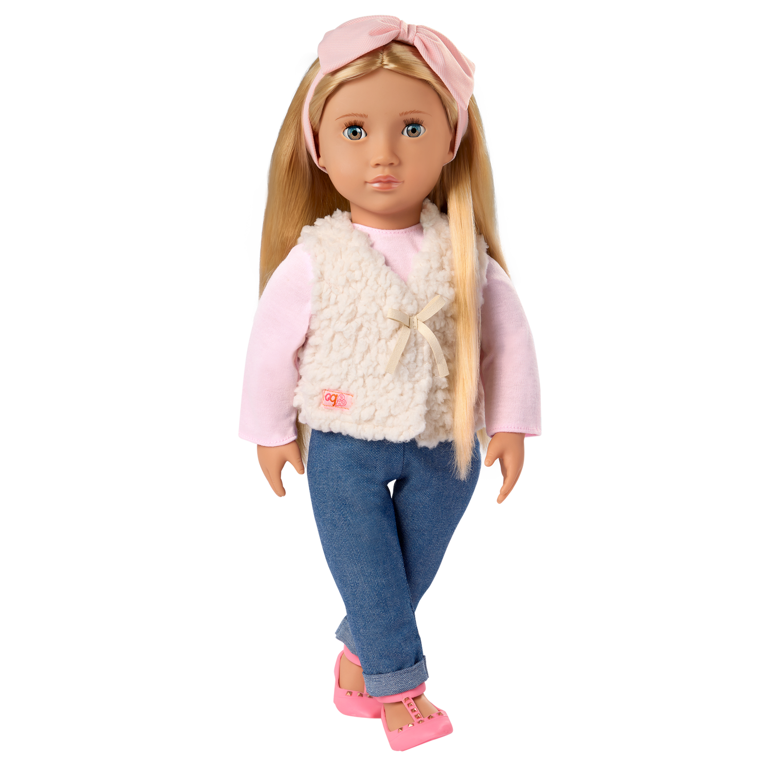 Inspirez l'amitié et le plaisir de la mode avec Emmie, la poupée de 46 cm d'Our Generation ! Elle porte une tenue élégante dans de jolies nuances de bleu et de rose, avec un gilet en fausse peau de mouton et un bandeau à nœuds pour jouer à s'habiller et à se coiffer. Emmie a un corps doux et câlin et des caractéristiques réalistes qui raviront les fans de poupées pendant les moments de jeu.