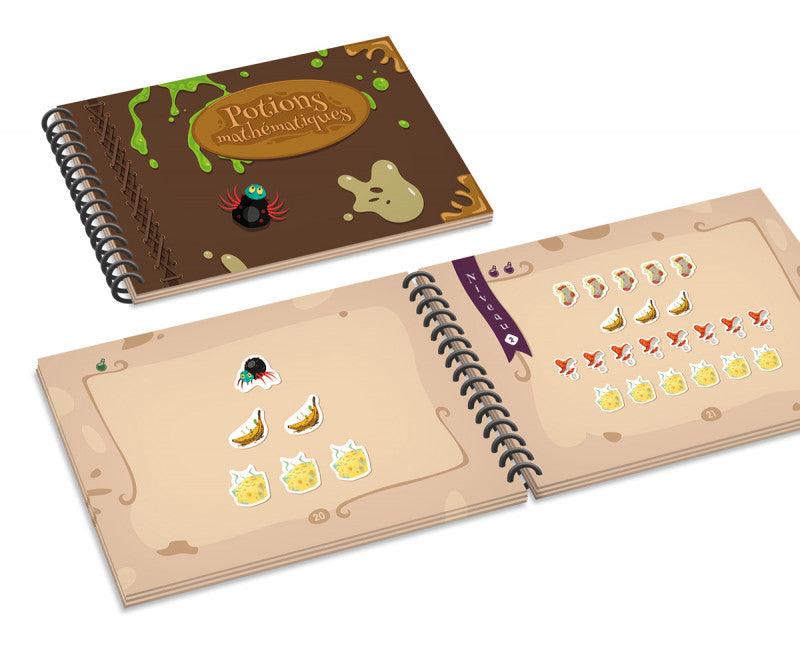 Potions mathématiques est conçu pour aider les enfants de 3 ans à 6½ ans à apprendre à compter et à reconnaitre les nombres écrits de 1 à 10. Le fait d’avoir à dénombrer des ingrédients farfelus comme des bananes pourries et des chaussettes qui puent les motive dans leur apprentissage.