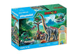 La courageuse équipe de chercheurs s'approche du gigantesque brachiosaure à l'aide d'un aéroglisseur capable de naviguer sur l'eau. Comprend deux personnages, un brachiosaure, un aéroglisseur, de la végétation et des accessoires.
