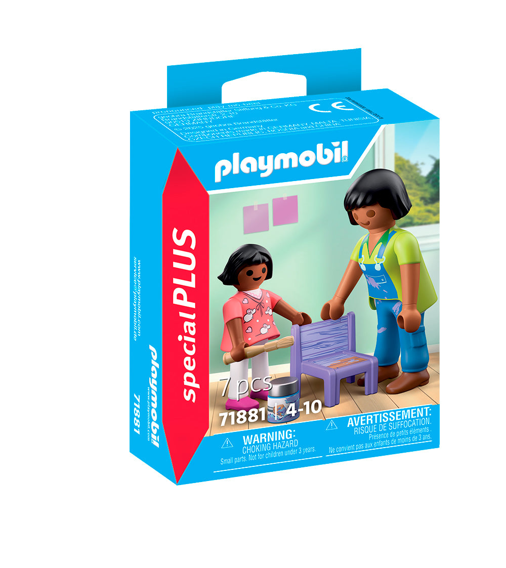 Redécorez la chambre de la petite fille. Avec sa maman, la petite bricoleuse donne une nouvelle couche de peinture à la chaise de sa chambre d'enfant. Comprend deux personnages et des accessoires.
