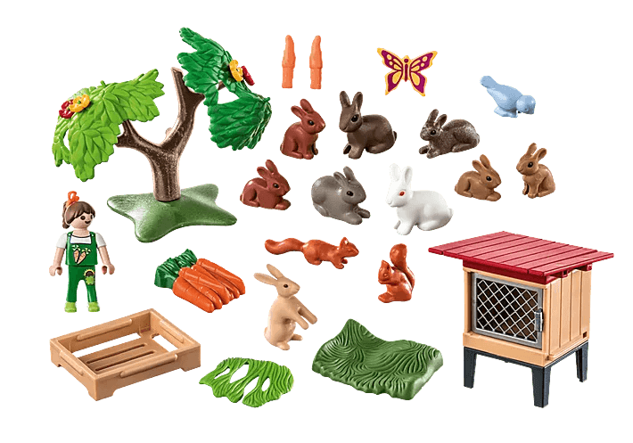 Les petits lapins sont des animaux tout doux qui adorent les câlins. Pas étonnant donc que la petite fille Playmobil en prenne autant soin. Foin, herbe fraîche et carottes, elle sait comment faire plaisir à ces adorables boules de poils. Pour le plus grand confort des animaux, le double clapier peut s'ouvrir et se refermer pour protéger les lapins. La vie à la campagne risque bien d'être pleine de tendresse. Différents lapins sont inclus dans ce set de jeu ainsi qu'une petite fille pour créer des histoires passionnantes à la campagne !