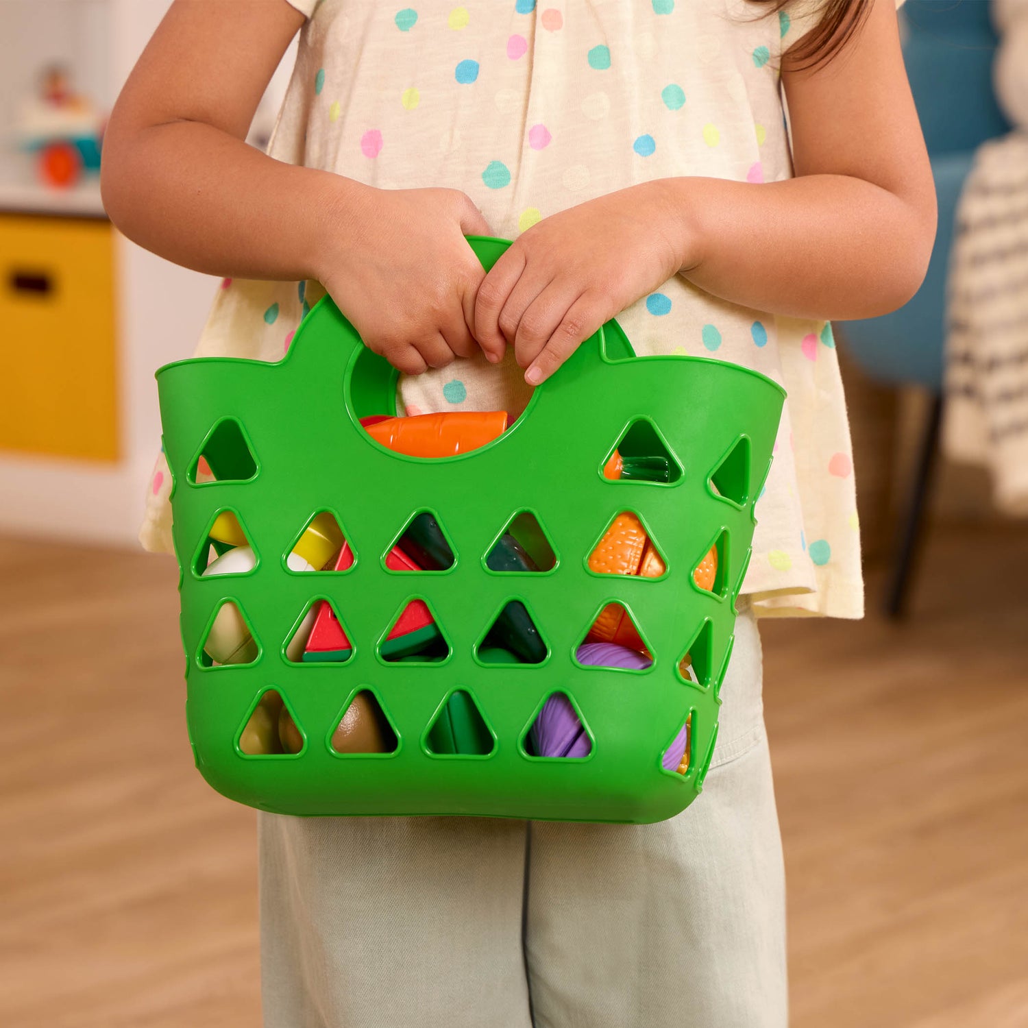 Cet ensemble de 35 pièces de nourriture pour enfants comprend 16 fruits et légumes colorés qui peuvent être coupés en deux à l'aide du couteau et de la planche à découper sécuritaires pour les enfants. Il suffit de les couper en deux et de les recoller ! Un sac fourre-tout vert est également inclus pour faire semblant de faire les courses. En découpant, préparant et jouant, les petits gourmands développeront leur coordination œil-main et leur motricité fine.