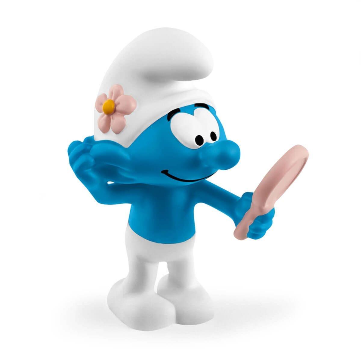Le Schtroumpf coquet s’admire dans le miroir d’un air satisfait : aujourd’hui, il est tout particulièrement élégant !