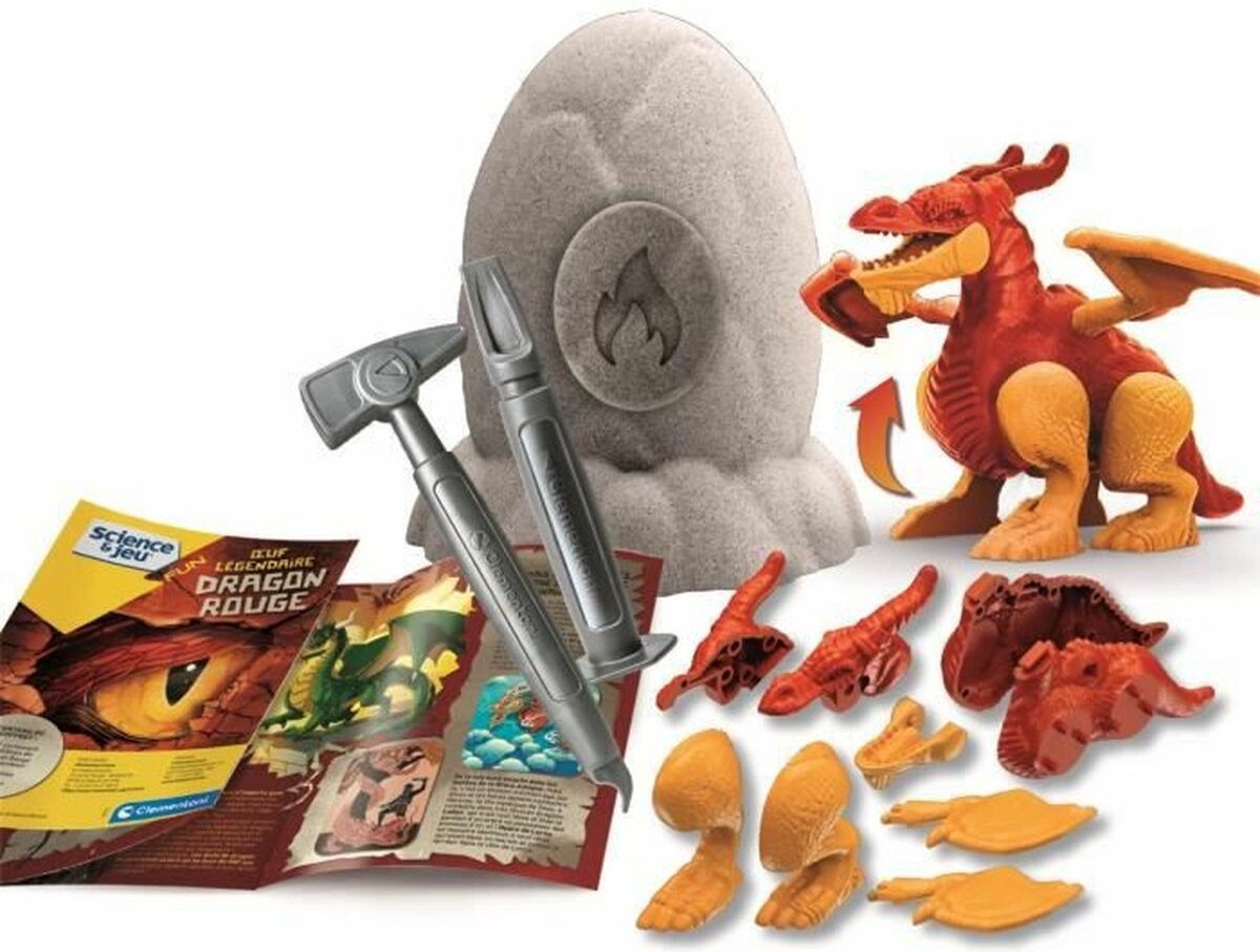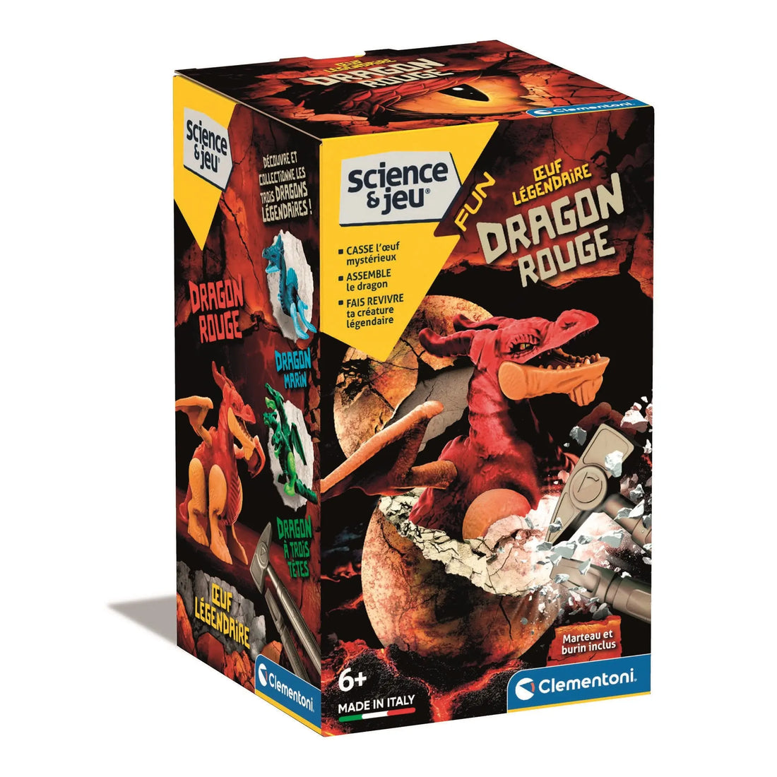 Inclus : œuf en plâtre à casser contenant les pièces du Dragon Rouge à assembler, marteau, burin, manuel d'instructions avec histoire