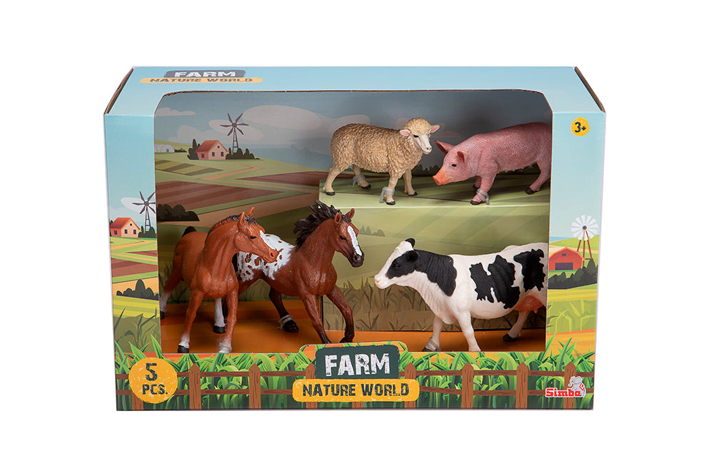 Découvrez cet ensemble d'animaux de ferme comprenant deux chevaux, un mouton, un cochon et une vache! Chaque animal mesure entre 10 et 15 cm, parfait pour recréer la vie à la ferme dans le jeu imaginatif de votre enfant.