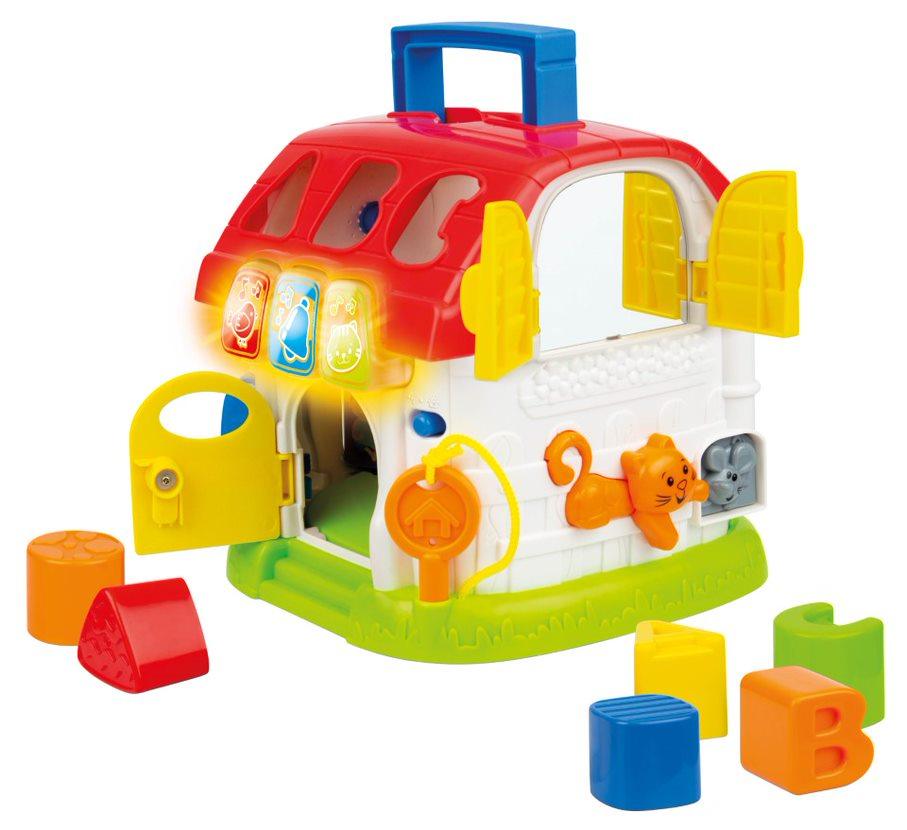 Horloge clic-clac, rouleau ludique, fenêtres à fermeture ouverte et porte de garage : Ces éléments interactifs offrent diverses activités pour stimuler les sens des bébés. L'horloge clic-clac produit un son de clic lorsqu'elle est manipulée, le rouleau ludique encourage la motricité fine, les fenêtres à fermeture ouverte introduit des concepts spatiaux simples et la porte de garage sert d'élément de jeu ou de rangement pour les blocs.